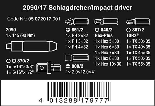 Juego de Destornillador de Golpe 90Nm 17 piezas 2090/17 Wera 072017