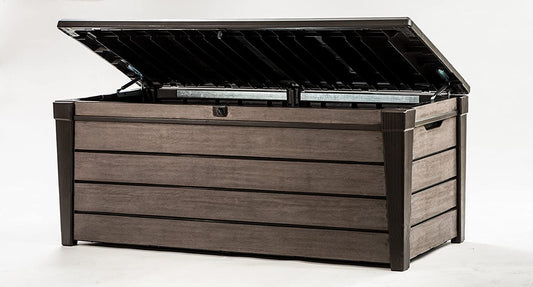 - Baúles exteriores: ideales para guardar cojines, mantas o juguetes de jardín. Su diseño compacto permite ubicarlos en cualquier rincón.