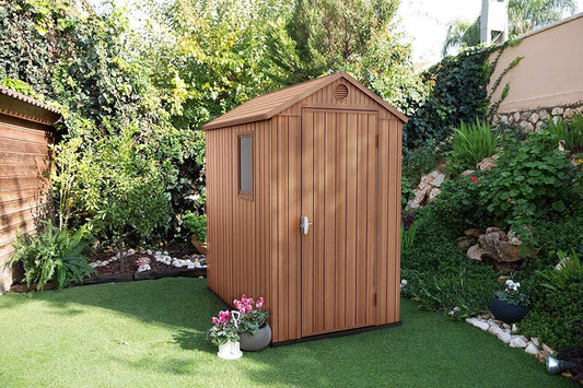 - Casetas de resina o madera: una solución de gran capacidad para quienes necesitan almacenar objetos voluminosos. Algunas incluyen estanterías y sistemas de ventilación.
