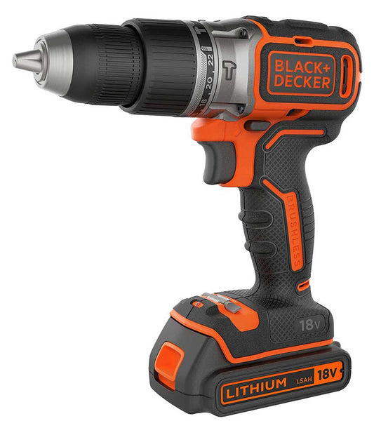 Taladro percutor Black+Decker BL188KB Sin escobillas - 18 V 2 bat. 1,5 Ah y maletín