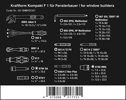 Herramientas de atornillar para trabajos de ventanaje 35 piezas Wera Kraftform Kompakt F 1 ref.134013