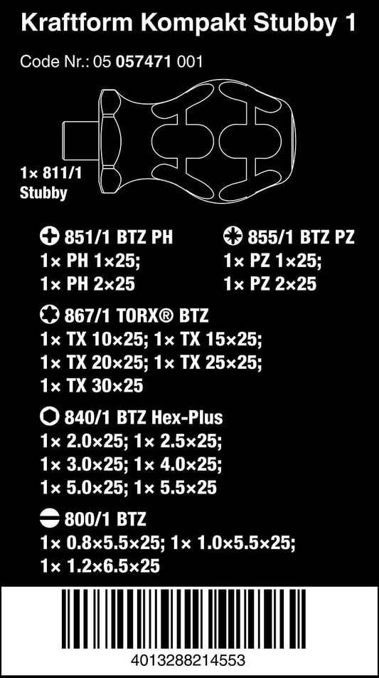 Juego herramientas de atornillar para bicicletas 19 piezas Wera Kraftform Kompakt Stubby 1 ref.057471