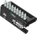 Bit-Check para aplicaciones en el área de la construcción en seco; un distanciador de alta calidad de aluminio; la profundidad de penetración del tornillo se puede ajustar de forma continua y permite una sumersión enrasada de los tornillos; 9 puntas de construcción en seco con un vástago de salida adaptado; un largo de 25 mm.