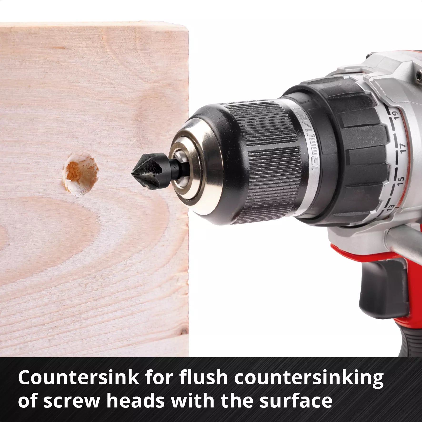 • 1 avellanador de 12 mm con vástago E 6.3 y seis filos de corte.