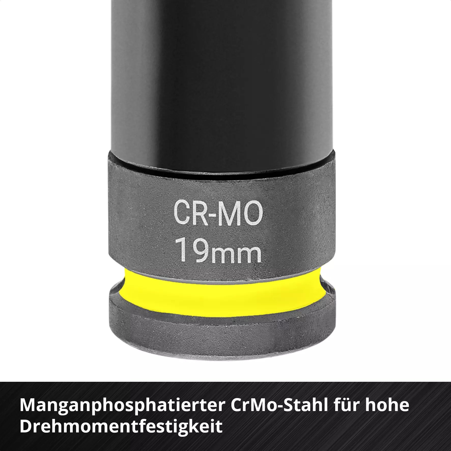 El Juego de llaves de impacto Einhell de 3 piezas (modelo 49109263) es un conjunto diseñado para el montaje y desmontaje eficiente de ruedas en vehículos, especialmente en llantas de aleación pintadas o pulidas.