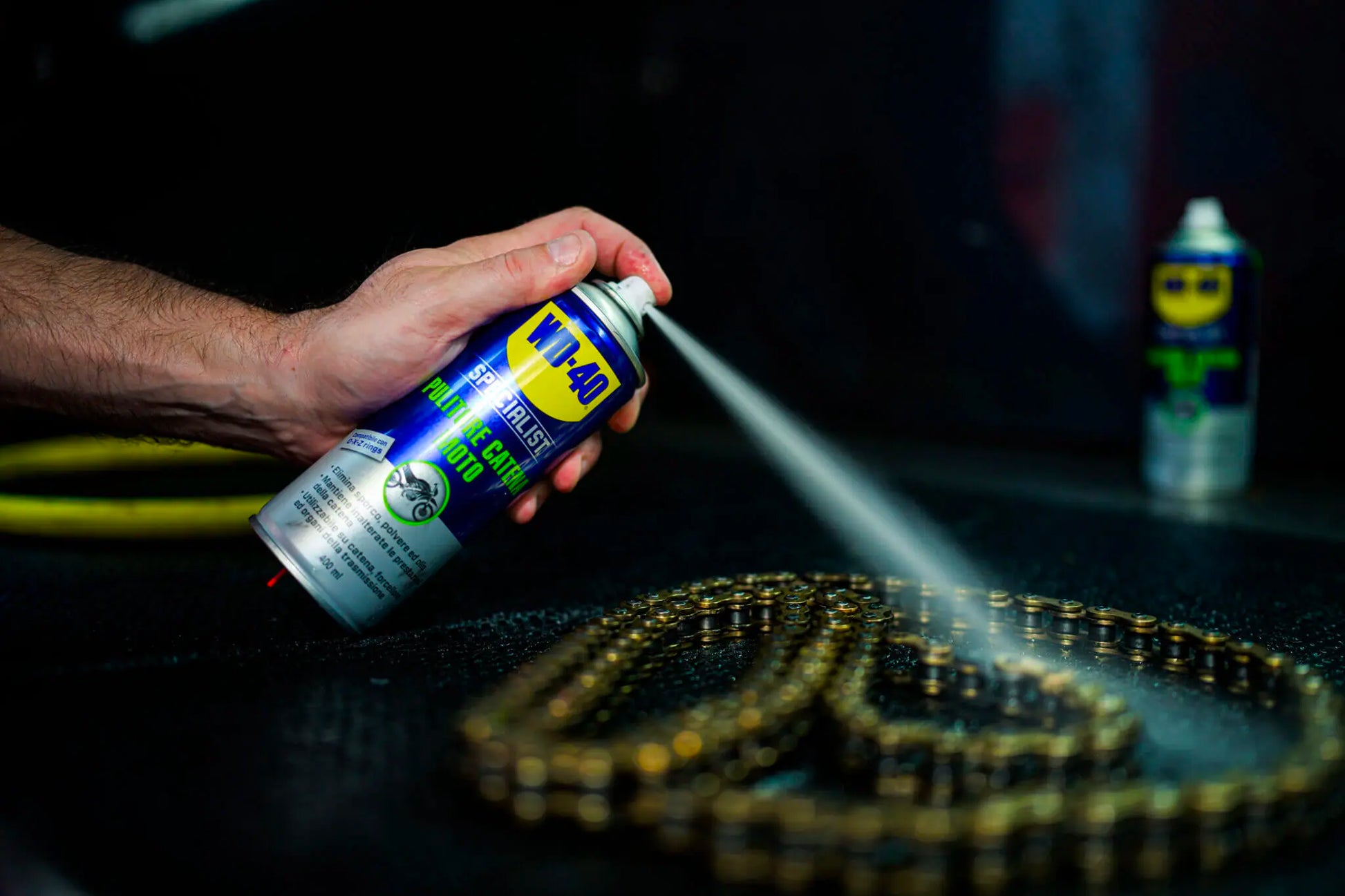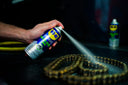 Potente spray limpiador especial para cadenas de motocicleta. Elimina en segundos restos de grasa, mugre y polvo adherido de la carretera, dejando la cadena lista para su lubricación. Compatible con cadenas O, X y Z-rings.