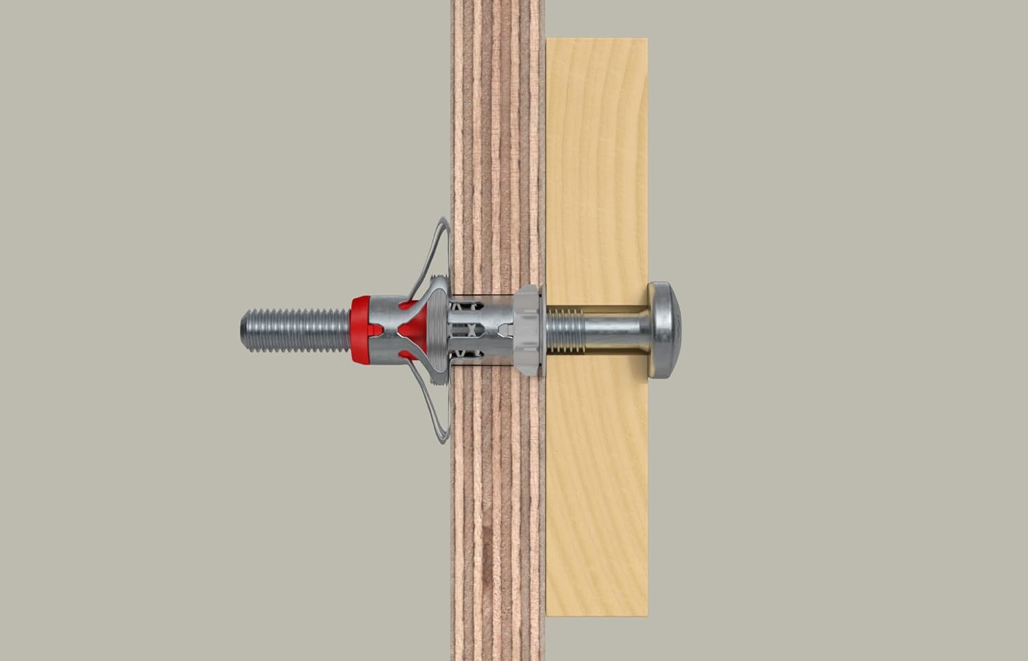 • Applications : for fixing pictures, TV stands, lamps, mirror cabinets, garage rails, substructures in plasterboard and gypsum fiber board, lightweight wood wool panels, particle board and plywood boards.