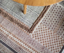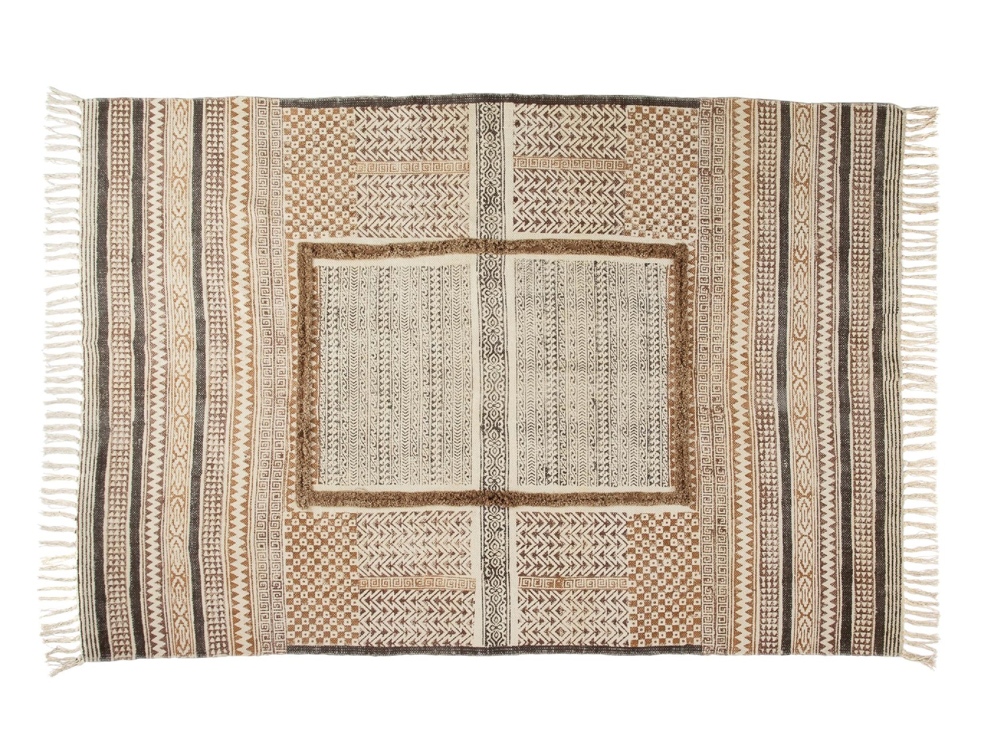 The Andrea House rectangular rug is woven from cotton with an ethnic and boho design in warm shades of brown, orange, beige, and white. It's decorated with side fringes that add visual character and texture. Its inviting style makes it ideal for living rooms, bedrooms, or hallways where you want to add warmth and personality to the space.